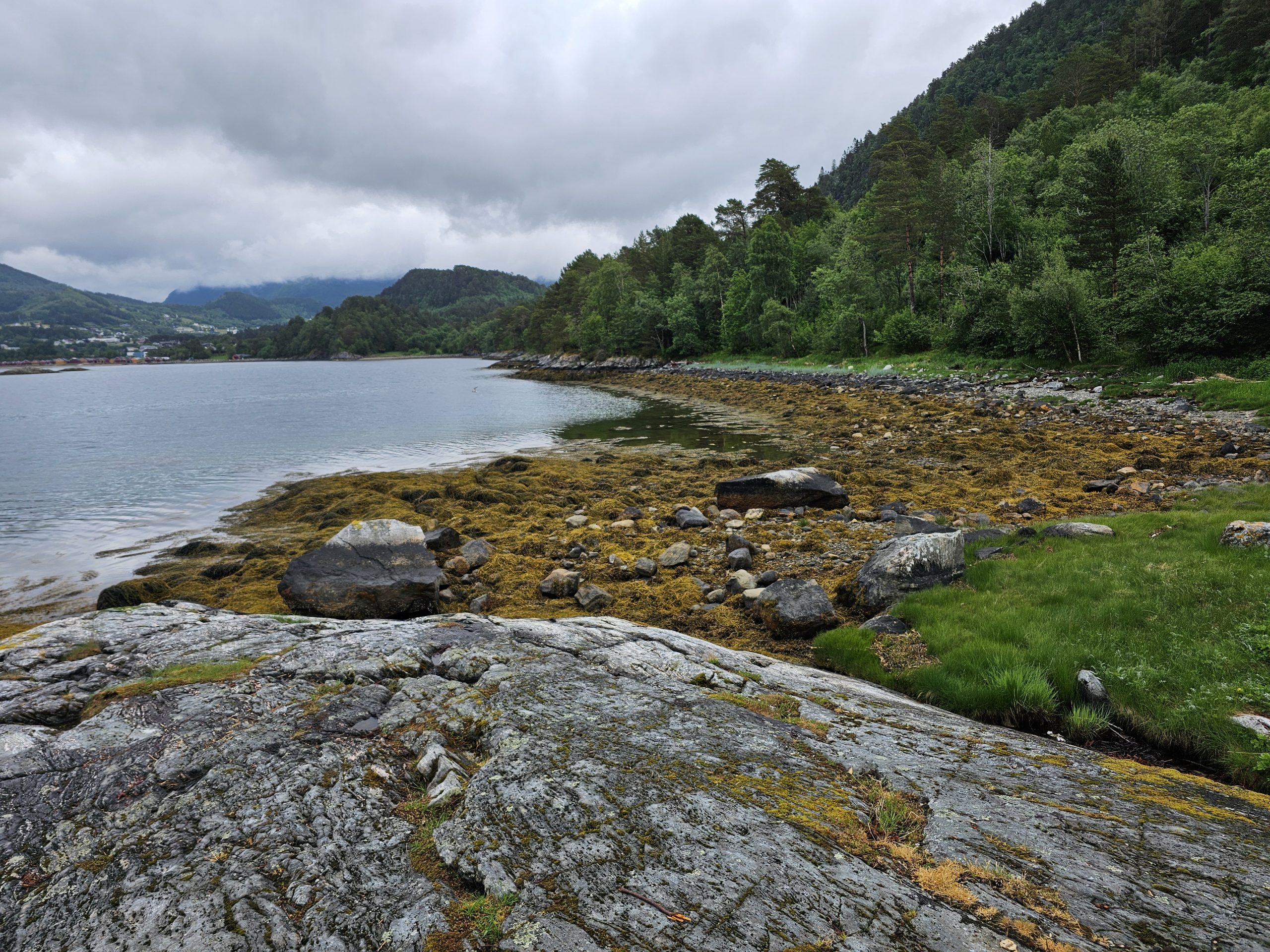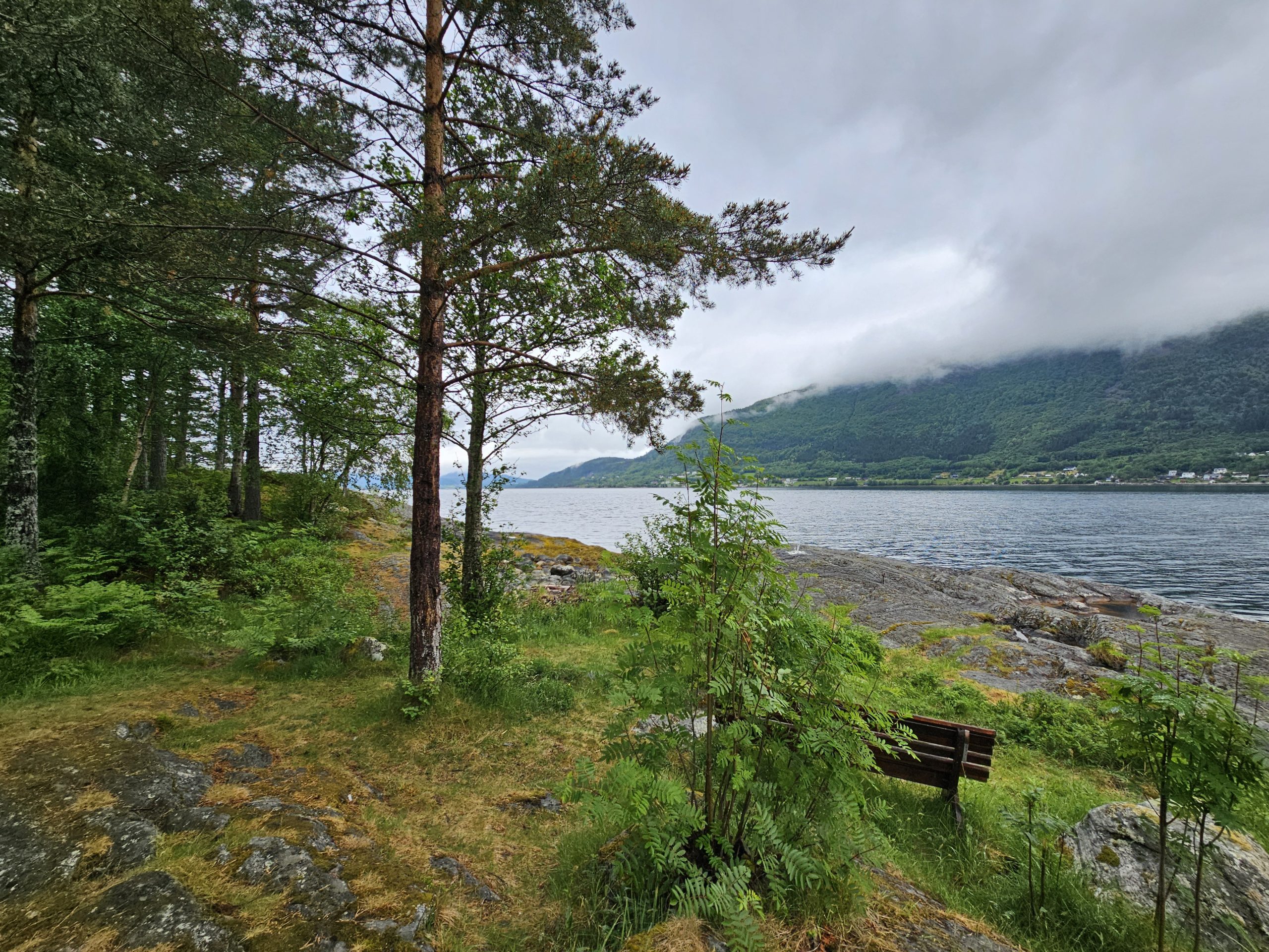 Ich wollte zu einer der vielen Aussichtsplattformen fahren, und von dort aus mir Balou den Ausblick in den Fjord genießen. Auf dem Weg dorthin wurde die Nebelwand immer dichter und ich ahnte schon, dass der Ausblick sich auf wenige Meter beschränkt. Mit einer gewissen Resthoffnung fuhren wir dennoch erstmal weiter. An der Plattform angekommen, wie erwartet fast keine Sicht, also musste ein neuer Plan her.