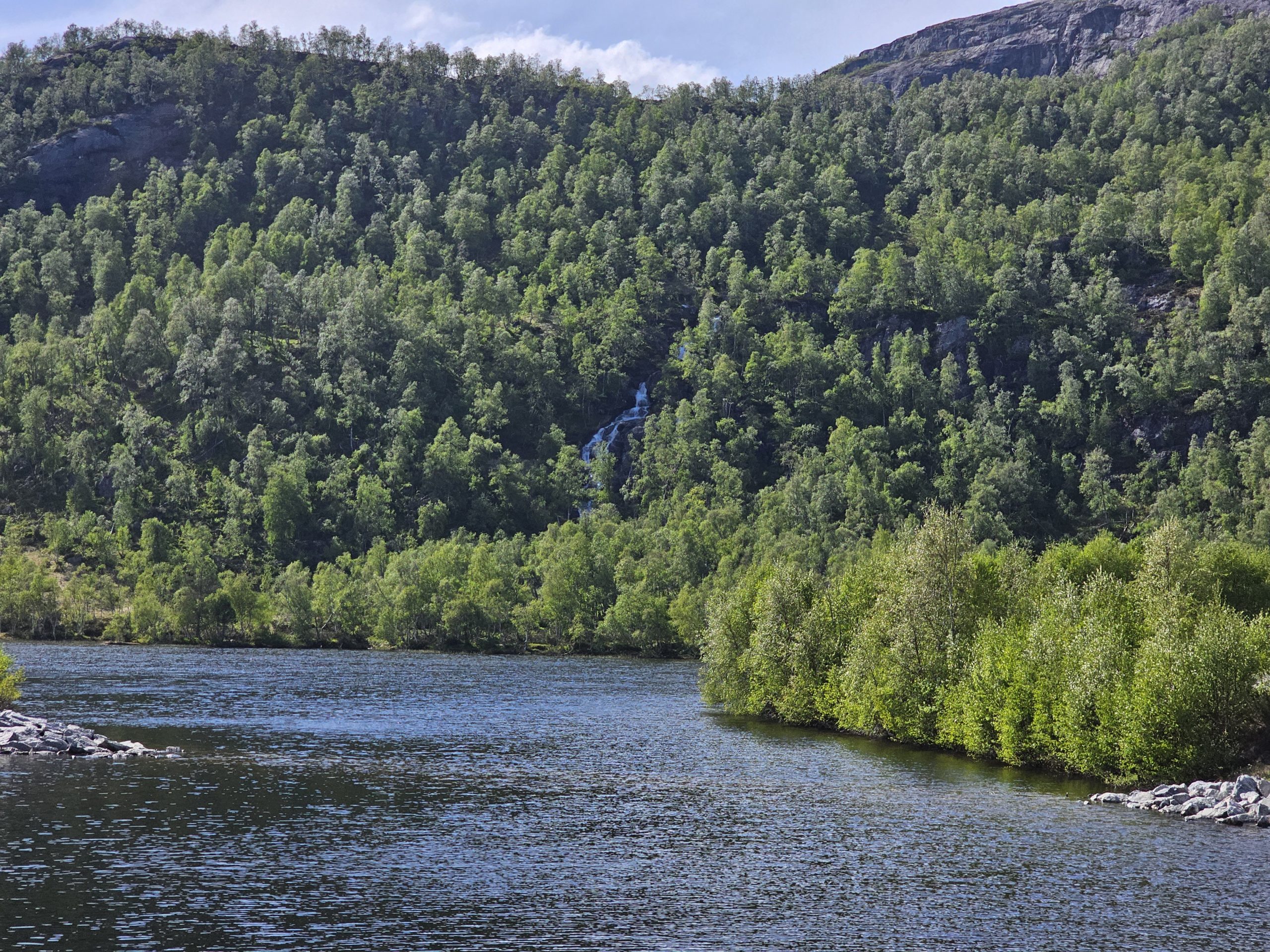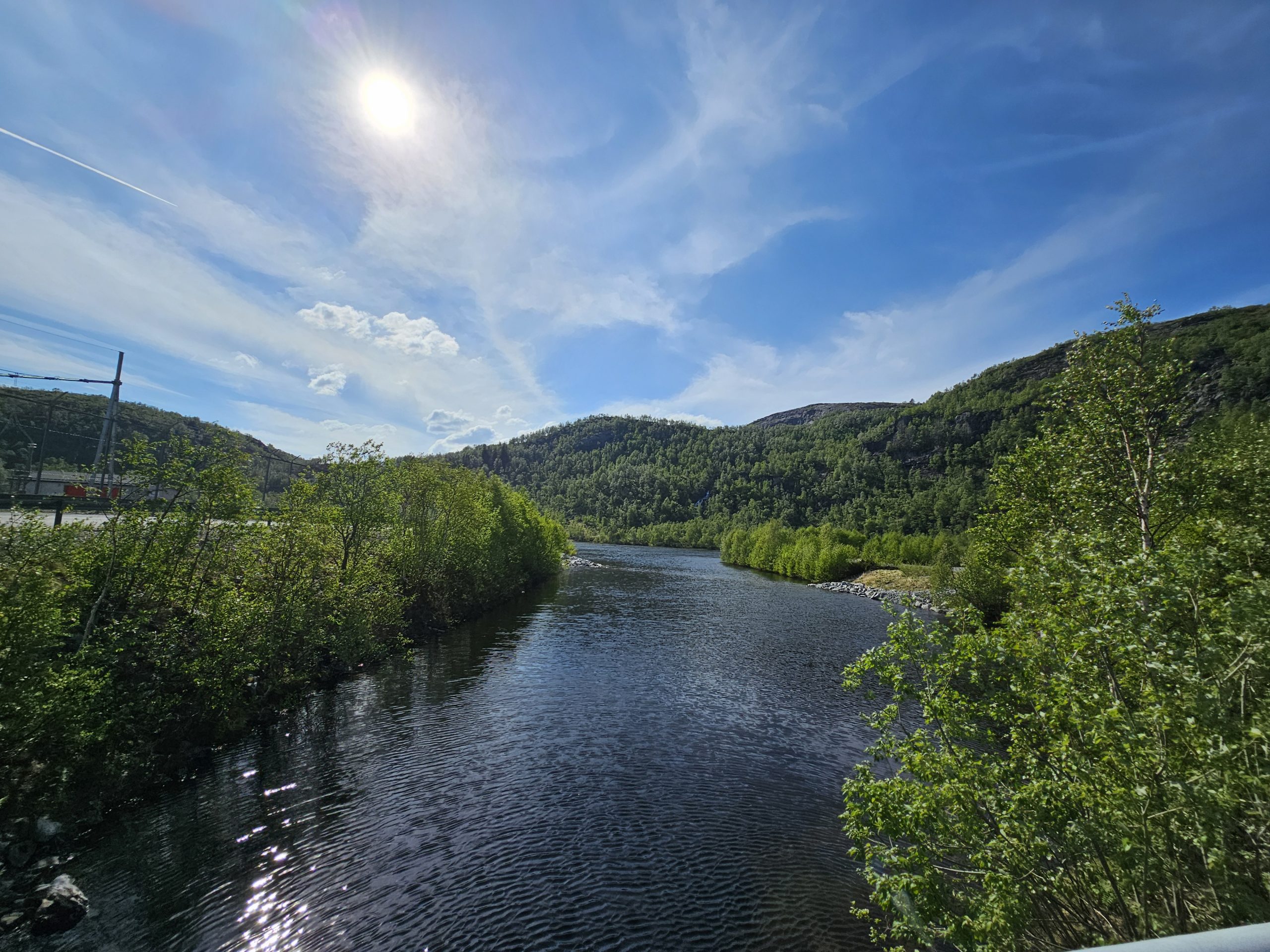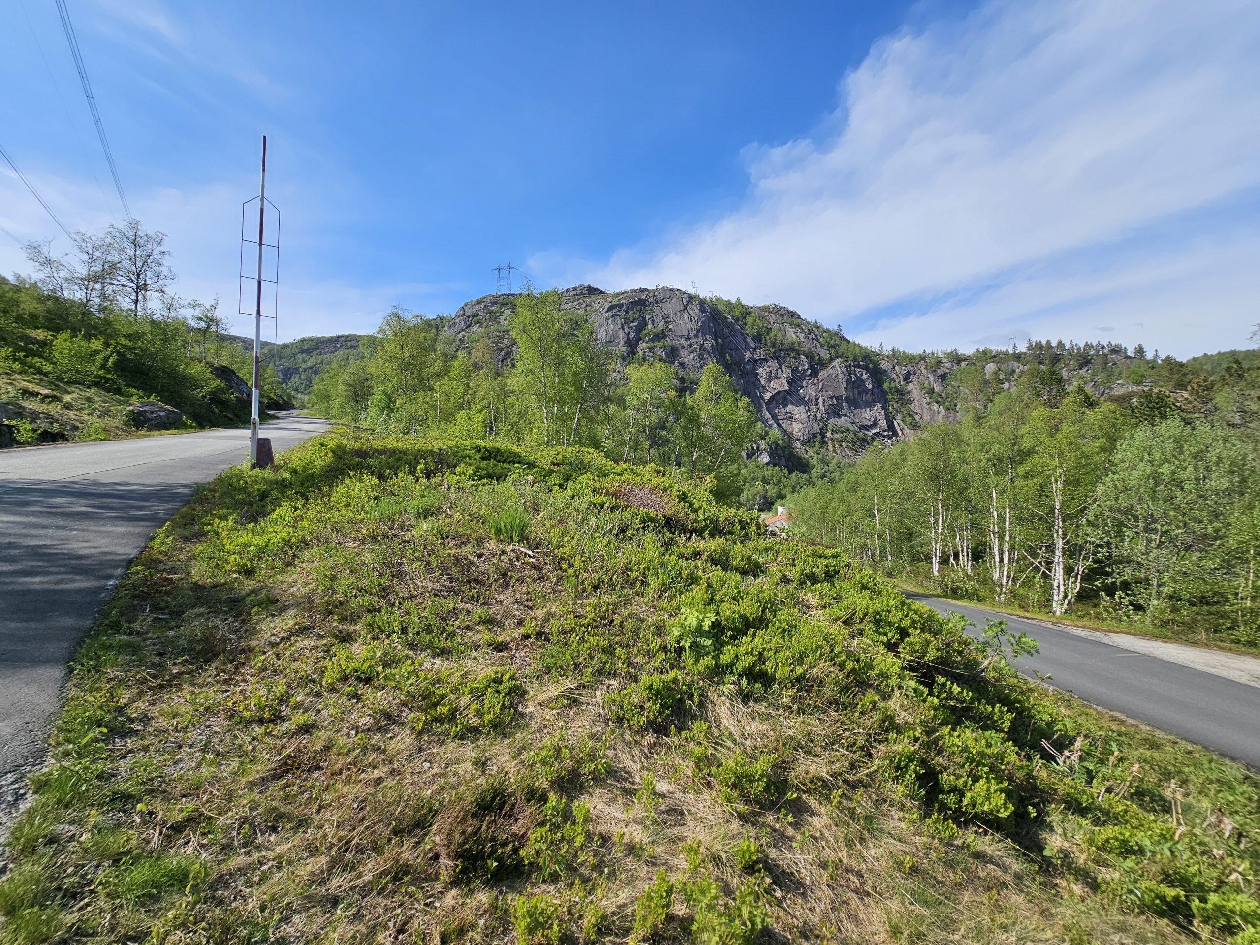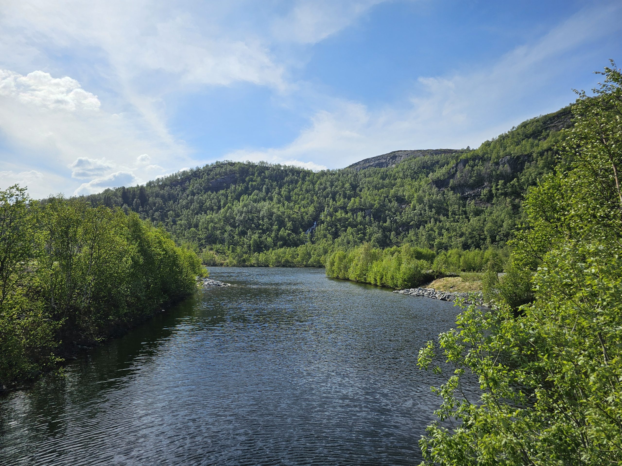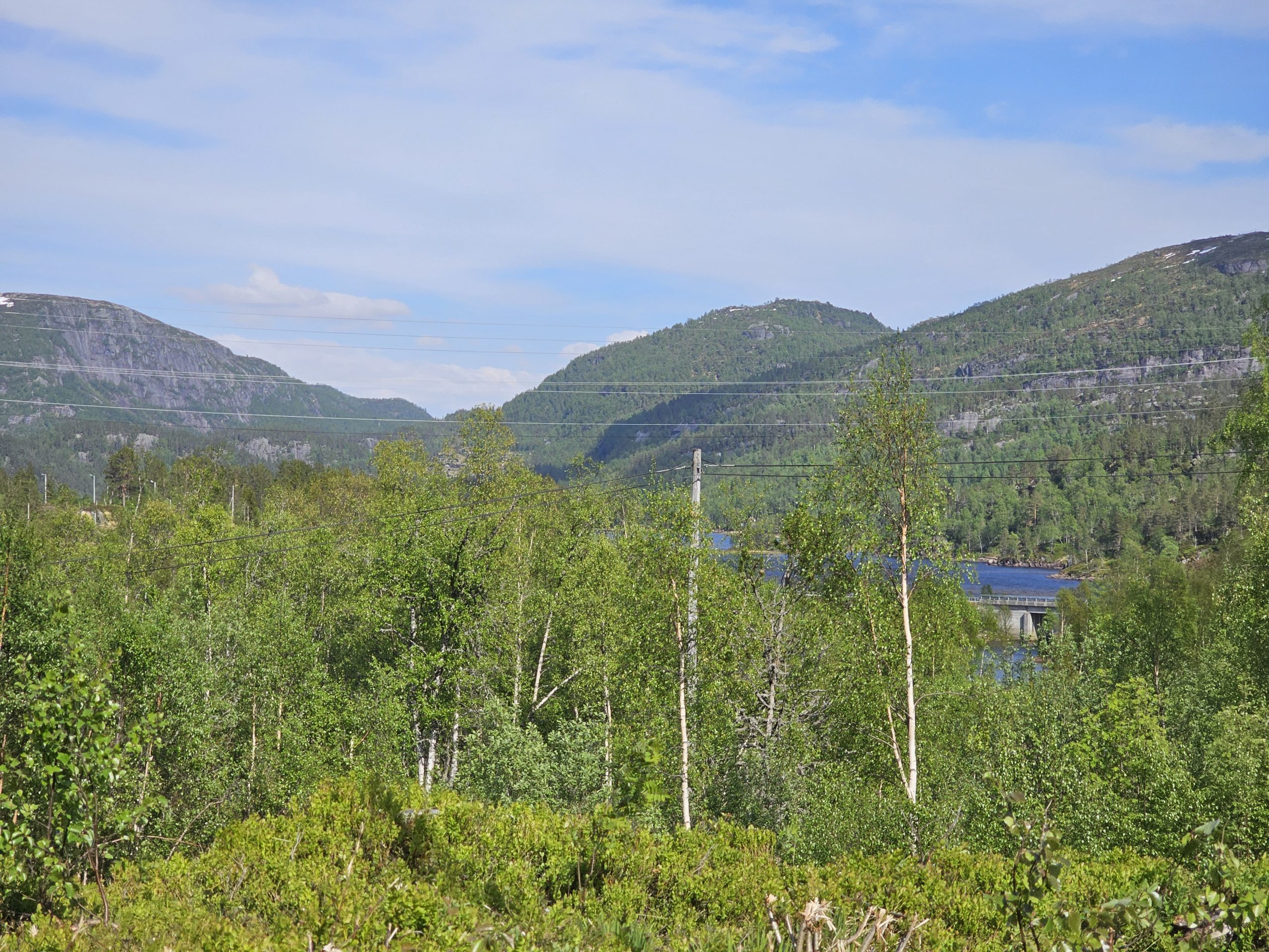 Auch an diesem Tag hoffte ich natürlich auf einen schönes Plätzchen für uns ganz allein. Mit dem Ziel am folgenden Tag Stavanger zu erreichen, fokussierten wir unsere Suche in diese Richtung. Mit der Hoffnung auf Einsamkeit steuerten wir den ersten Stellplatz an. Und tatsächlich sollte sich unser Wunsch endlich erfüllen. Etwas abgelegen von der Straße bezogen wir auf einem Schotterplatz (klingt unromantischer, als es eigentlich ist) Stellung. Mit einem genialen Ausblick auf Berge und einen See, ließen wir den Abend gemütlich ausklingen